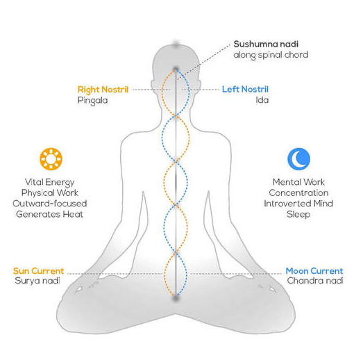 Nous faisons l’expérience du Prana par des techniques respiratoires ciblées et volontaires. Cette énergie circule dans notre corps par l’intermédiaire du souffle via les canaux énergétiques appelés nadis et qui se trouvent dans le corps pranique.